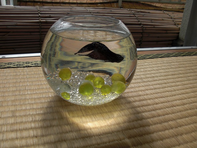 再び部屋に戻ると、まずはベタの水換え&水槽洗い。