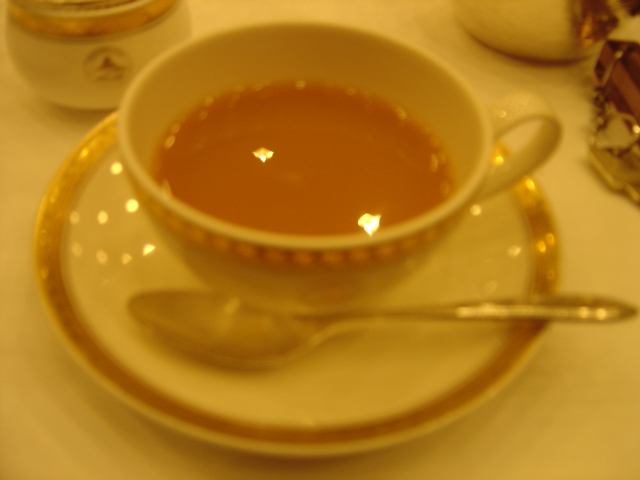 ふおおおお、食堂も立派じゃああ。燻されたような色と木の香り。食器も美しく椅子も座り心地が良い。ホテルの人が椅子を引いてくれたりするし。