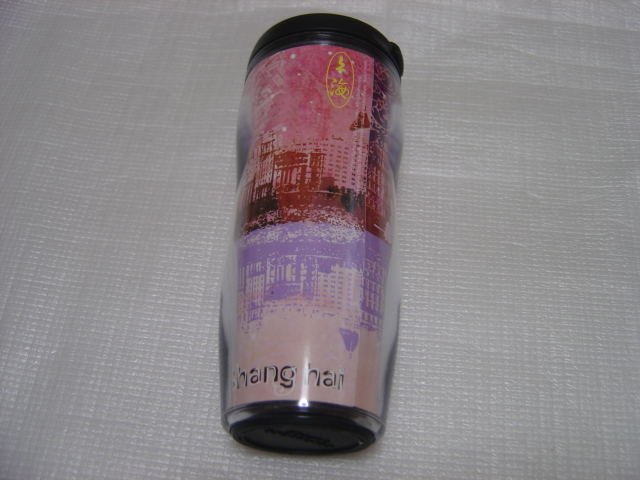 おみやげには僕がリクエストした通り、中国のスタバ関連商品くれました。上海タンブラー。後は機内食と中国のポケットティッシュ。