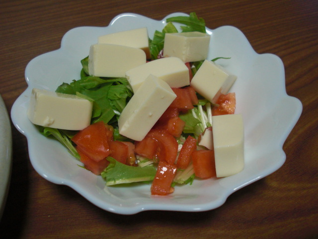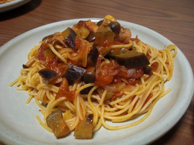 うっかり昼寝してご飯を炊いていなかったので、しめじと茄子とベーコンのトマトパスタと豆腐入りサラダ。ちなみに豆腐の賞味期限は10日程過ぎていた。