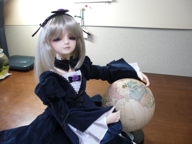 オークションでゲットした、スタバの地球儀。何だか大きさの対比的に世界制服でも企んでいるような図になってしまいました。