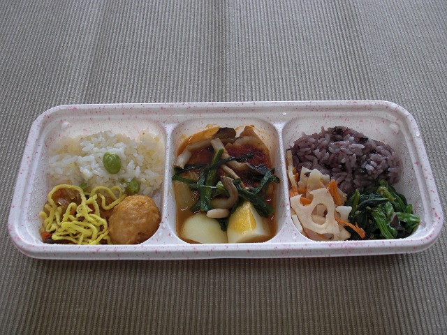 内容は「鶏つくねと野菜の炊き合わせ」、「カムジャタン」。今日は勉強前の腹ごしらえとして「カムジャタン」を頂く事に。